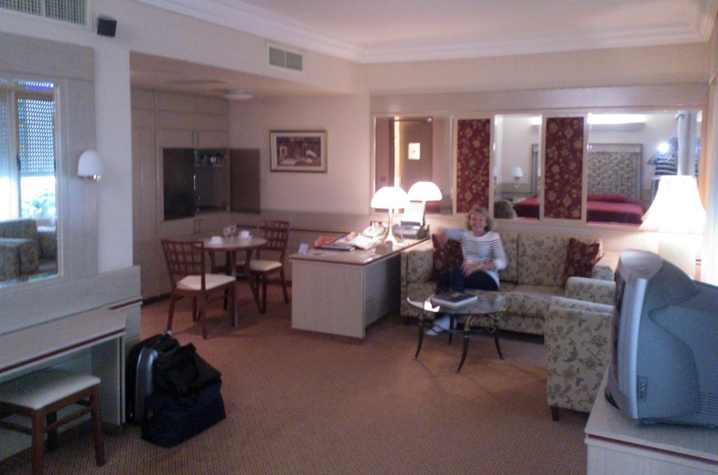 Hotellissa on suuret huoneistot, josta löytyy keittokomero, sohvakalusto, kirjoituspöytä yms. Kun tuosta komeudesta maksoi 74 euroa aamiaisineen, voi sitä todella suositella.