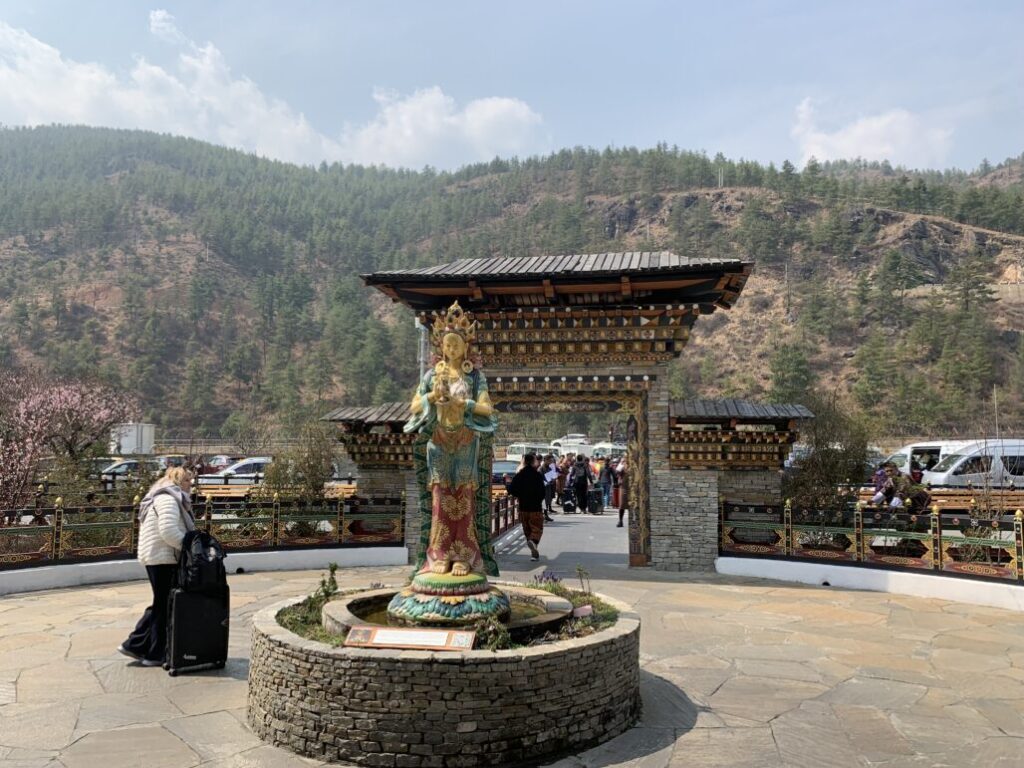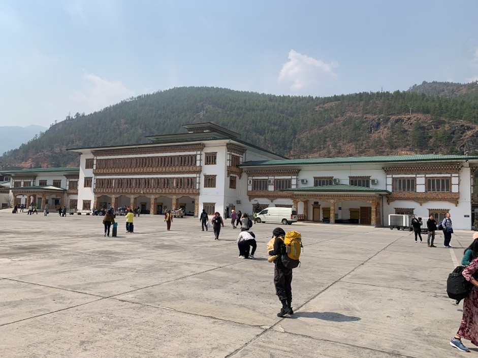 Lentokoneemme laskeutuminen Bhutaniin on minulle kutkuttavan jännittävä kokemus. Tuntuu, että lennämme hyvin läheltä alla olevia rakennuksia, mutta saavumme turvallisesti maahan. Noustuani ulos lentokoneesta ihmettelen ensiksi sitä, että nyt olen viimein täällä – vuorien keskellä.