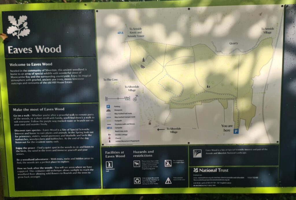 Kun aloimme aamulla tutkia mihin olimme majoittuneet, kävi ilmi, että olimme todella mielenkiintoisessa paikassa. Kävi ilmi, että Eaves Wood on