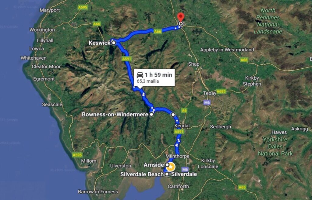 Nämä maisemat matkalla kohti Arnsideä enteilivät jo sitä mitä on odotettavissa, kun pääsemme Lake Districtin alueelle.