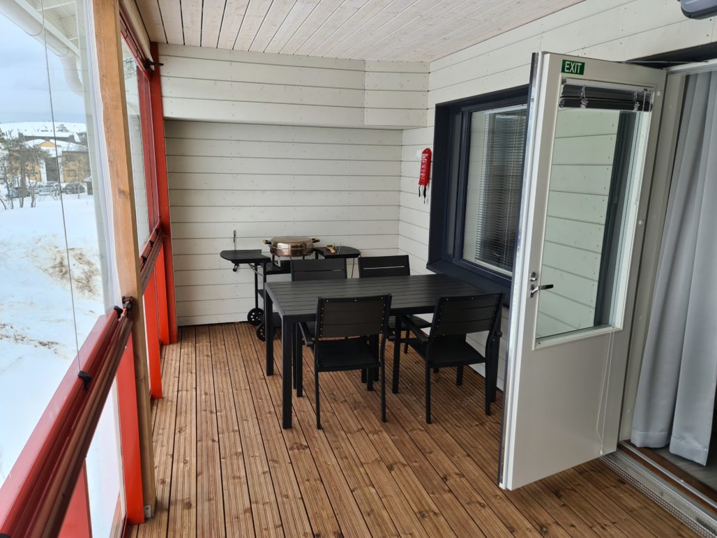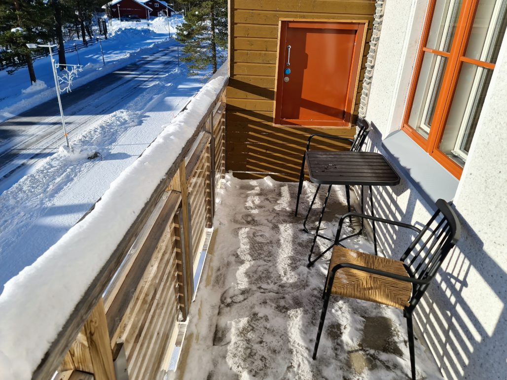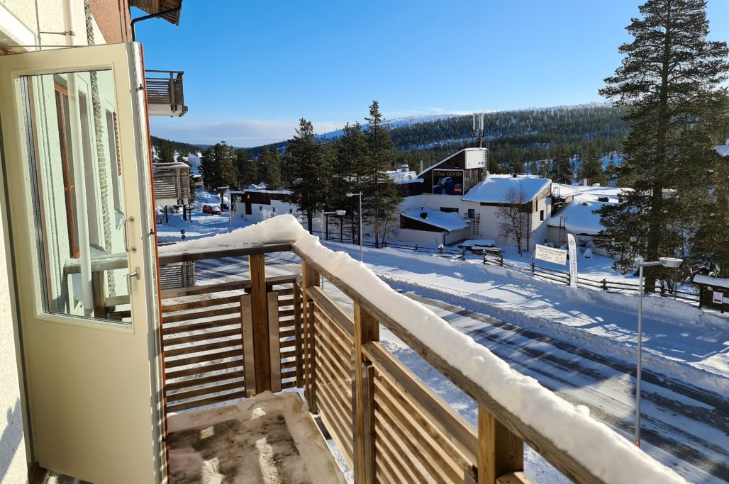 Meillä kävi tällä kertaa säkä ja saimme parvekkeellisen huoneiston tuntureille päin. Se mitä jäimme kaipaamaan on lasitetun terassin puuttuminen. Kannattaisi ehkä harkita asentaa vielä jälkiasennuksena!