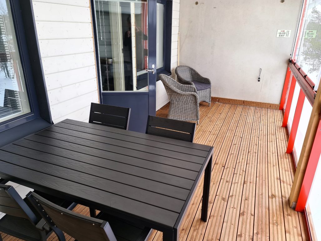 Onneksi uusissa Villaksissa niin Saariselällä kuin muuallakin tuo puute on korjattu. Yleisöä on kuunneltu ja lasitetut, tilavat terassit ovat tulleet jäädäkseen. Niistä esimerkki myöhemmin tässä artikkelissani, kun esittelen uuden luhtitalon Villas-huoneiston.