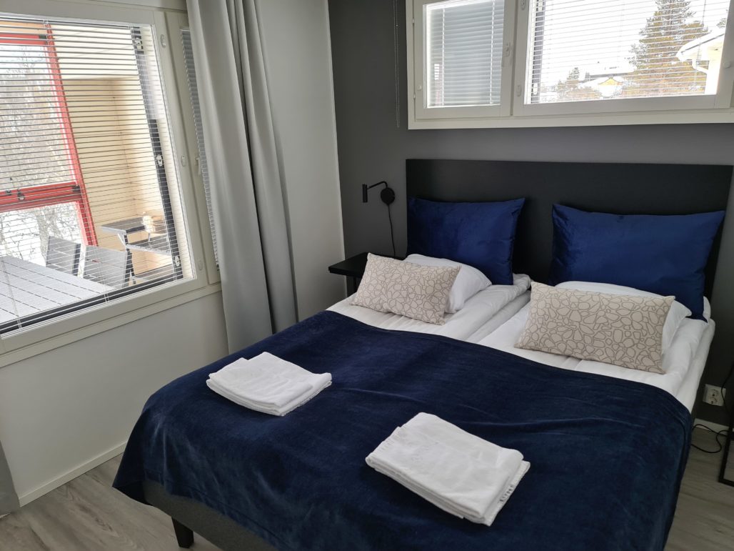Makuuhuoneet ovat sopivan tilavia ja valoisia. Onneksi pimennysverhot ovat varustuksena, sillä kesäkautena aurinko ei laske noilla leveysasteilla.