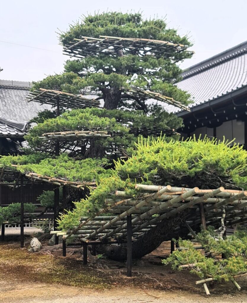 Eräs mielenkiintoinen yksityiskohta puutarhassa oli tämä valtava, tuettu mänty. Sitä kutsutaan nimellä Rikushu-no-Matsu (maalaiva-mänty), ja se on muotoiltu näyttämään purjehtivalta laivalta.