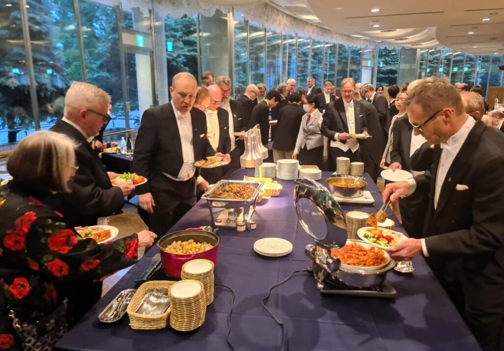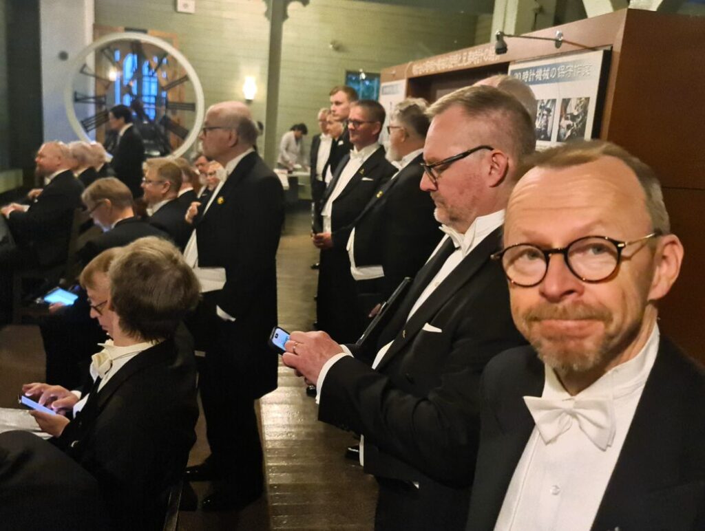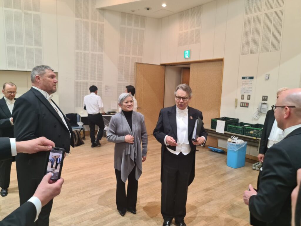 Sen voin paljastaa, että ohjelmaa riitti karonkassa. Oli puheita, mutta ennen kaikkea karonkkalauluja. Japanilaiset laulajaveljet esittivät omia kvartettilaulujaan, me suomalaiset perinteisiä karonkkalauluja ja yhdessä laulettiin mm. konsertissakin esitetty japanilainen ”Saitara-bushi”.