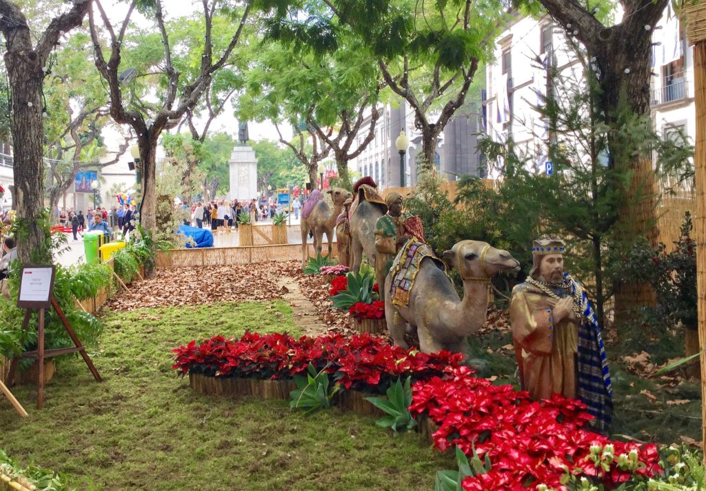 Ylivoimaisesti näyttävin kohde oli kuitenkin bulevardin keskelle rakennettu talli seimineen, aaseineen. Joosef, Maria ja Jeesus oli aseteltu kukkaloiston keskelle. Itämaan tietäjätkin olivat jo matkalla.