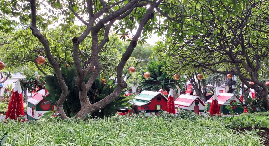 Avenida Arriagan päässä olevan liikenneympyrän keskellä joulutähdet ja valot saivat aikaan ihan hyvän kokonaisuuden.