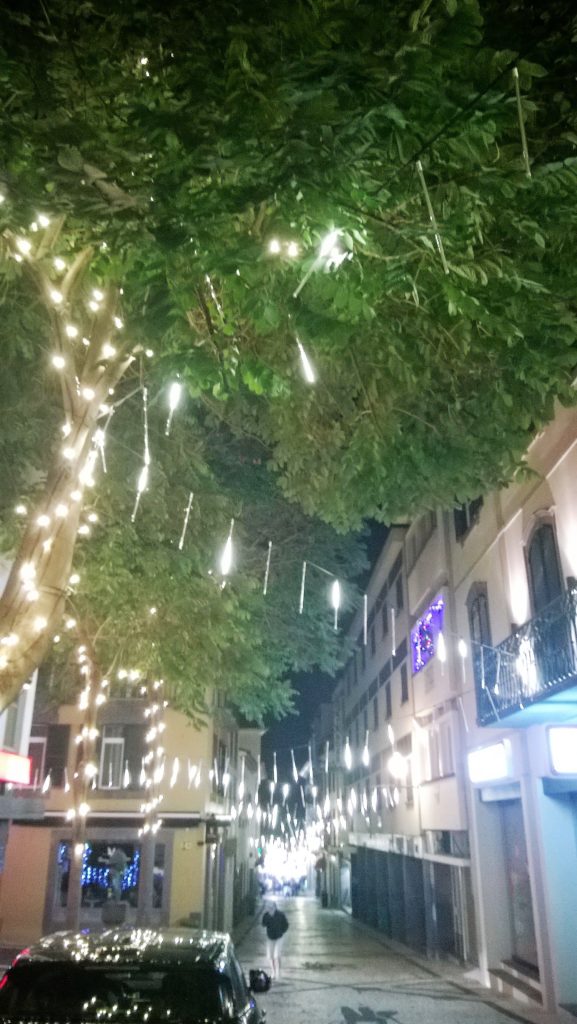Vaikka ajatukset olivat muualla ja mieliala maassa, lähdin katsomaan mikä tekee Funchalin jouluvaloista niin ainutlaatuiset. Odotukset olivat niiden suhteen korkealla ja syystä tai toisesta en ollut lopputuloksesta niin vaikuttunut kuin olisin toivonut. Jouduin jälkikäteen huomaamaan sen tosiasian, että tuolloin käytössäni olleessa Nokia-merkkisessä puhelimessa ei ollut kameraa, joka olisi osannut vangita valot niin, että niiden parhaat puolet pääsisivät esille. Ainakaan automaattiasetus ei ollut nyt lainkaan niin hyvä, kuin olisin toivonut. Kuvat ovat siis aika surkeita, valitettavasti.