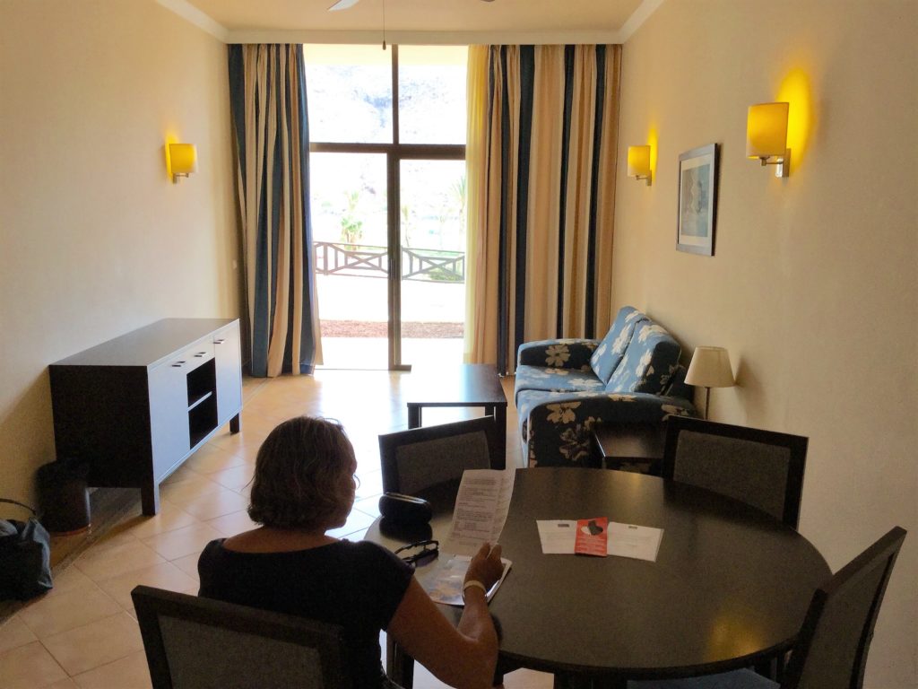 Pieni neuvottelu johdon kanssa ja meillä oli ihan kohtuullinen huoneisto osittaisella merinäkymällä RIU:n takana. Olimme varanneet sen aamiaisella 70 euron hintaan, mutta pienen välikohtauksen jälkeen meillä olikin puolihoito pariksi yöksi. Menetteli, kun ei valittanut! Hinta laatu ok, sillä kyseessä oli 1 mh huoneisto. Tästä hotellista ei kuitenkaan jäänyt kuvamateriaalia perikunnan ihmeteltäväksi, sillä olimme tottuneet vähän parempaan tasoon.