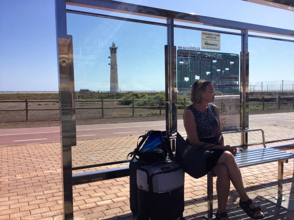 Perjantaina 7.10 oli aika jälleen lähteä liikkeelle. Olimme täydellisesti unohtaneet Fuerteventuran oranssit bussit. Ne ovat saaren yhdenmoinen shuttle-kuljetusjärjestelmä. Viimeistään paria vuorokautta aikaisemmin tilatessasi saat ne hakemaan hotellilta varsin kohtuulliseen hintaan. Hokasimme sen liian myöhään, joten matkasimme lentokentälle paikallisbussilla. Tuo vajaan 100 km matka kesti vajaat 1,5 tuntia ja maksoi 9 euroa. Ei paha hinta siis.