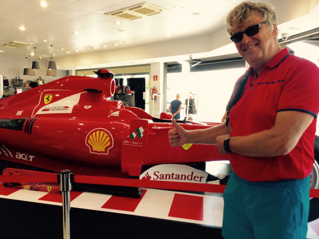 Kohta olimme kartsalla hillumassa. Ensimmäisenä törmäsimme Alonson muutamia vuosia sitten ohjastamaan Ferrariin. Pitihän se kuvata, koska olin osannut pukeutuakin oikeaan väriin.
