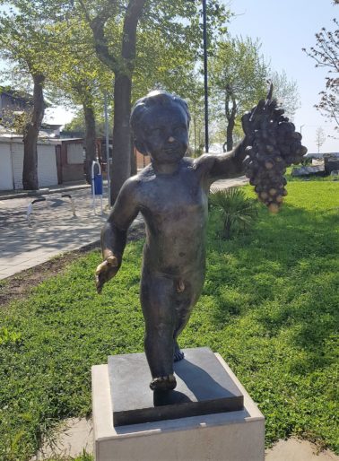 Tämä paikallinen pronssinen ”vigeland-tyylinen” patsas oleilee laiturin kupeessa. Kaupungin symboli, viinirypäleitä kädessään pitävä poika viittaa Pomorien alueen tuhansia vuosia vanhaan viininviljelyperinteeseen.
