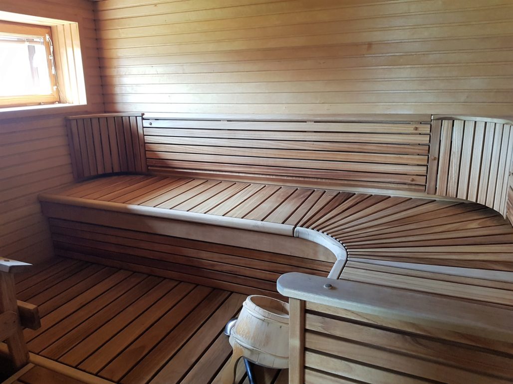 Upea lähes-heti-valmis (noin 15 min) sauna on huoneiston sydän. Sitä tuli käytetyksi päivittäin osin siksikin, että sen pesuhuoneesta on suora uloskäynti parvekkeelle.