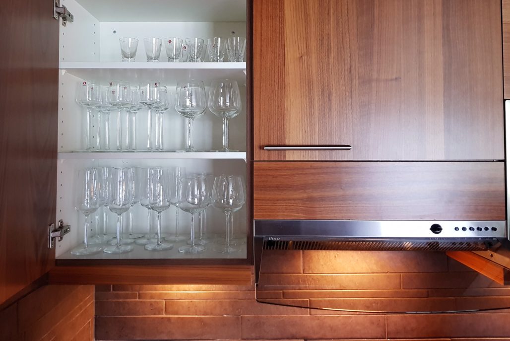 Miinustakin löytyy. Tumma, sinällään tyylikäs tupakeittiön sisustus vie siitä valoa. Talvella sillä ei ehkä lie väliä, mutta kesällä mielestämme on. Mutta tyylikäshän se huoneisto on tuollaisenaan. Kyllä siellä silmä lepää.
